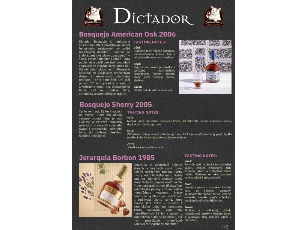 Na premium degustační set Dictador není třeba se objednávat. V nabídce jej najdete vždy a proto se voucher skvěle hodí třeba jako dárek, o který se obdarovaný nemusí starat, volat o rezervaci. Stačí přijít kdykoliv během naší otevírací doby.